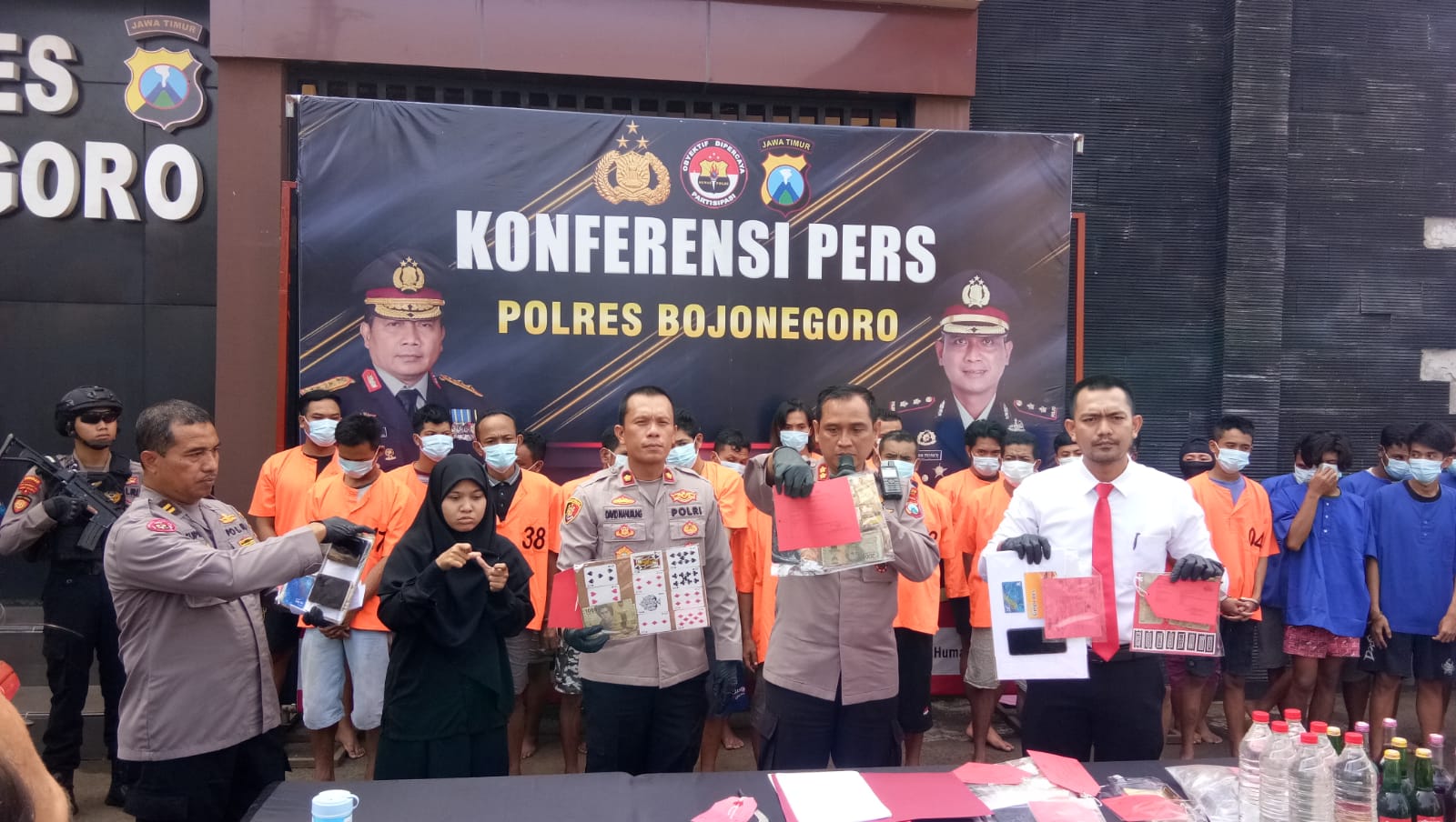 Bojonegoro, damarinfo.com – Dalam kurun waktu selama 12 hari Kepolisian Resort Bojonegoro mengamankan sebanyak 16 tersangka perjudian berbagai jenis, dengan rincian judi togel online sebanyak 7 laporan, judi jenis Slot “Gates Of Olympus” 4 laporan dan judi jenis kartu atau konvensional sebanyak 2 laporan.