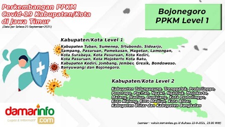 Bojonegoro, damarinfo.com- Perkembangan pandemi covid-19 di Indonesia semakin membaik termasuk di Kabupaten Bojonegoro. Ini ditandai dengan masuknya Bojonegoro masuk ke level 1 PPKM.
