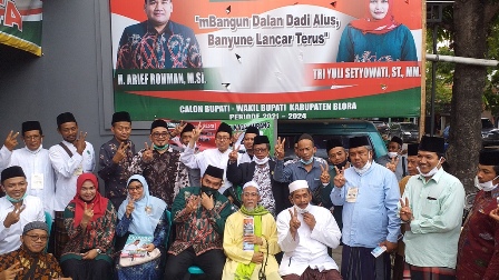 Blora-Dukungan kepada pasangan calon bupati dan wakil bupati H Arief Rohman-Tri Yuli Setyowati (ARTYS) terus bertambah. Setelah sebelumnya Partai Berkarya, kali ini giliran aliansi santri dan kiai Kabupaten Blora yang menyatakan dukungannya kepada pasangan calon (paslon) nomor urut dua ini di Pilkada Blora. Mereka mendeklarasikan dukungannya Rabu 28-Oktober-2020.