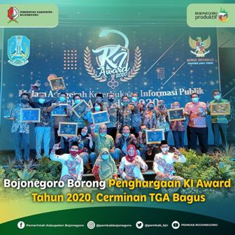Bojonegoro-Kabupaten Bojonegoro menyabet banyak penghargaan terkait informasi publik. Penghargaan ini membuktikan bahwa implementasi Transparancy and Government Accountability (TGA) di Kabupaten Bojonegoro cukup bagus.
