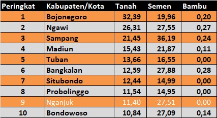 Persentase ini menempatkan Kabupaten Bojonegoro pada urutan pertama rumah penduduk yang berlantai tanah dari 38 Kabupaten/Kota se Jawa Timur.