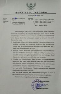 Bojonegoro- Keputusan penerapan jam malam diambil dalam rapat koordinasi Satuan Tugas Percepatan Pencegahan Penyebaran dan Penganangan corona virus disease (Satgas Covid-19) Bojonegoro, Selasa 22-12-2020 di Pendopo Malowopati Pemerintah Kabupaten Bojonegoro. Keputusan ini diambil didasarkan pada status Kabupaten Bojonegoro yang kembali masuk dalam resiko tinggi atau biasa disebut zona merah. Pelaksaanya efektif berlaku mulai hari Rabu 23-11-2020.