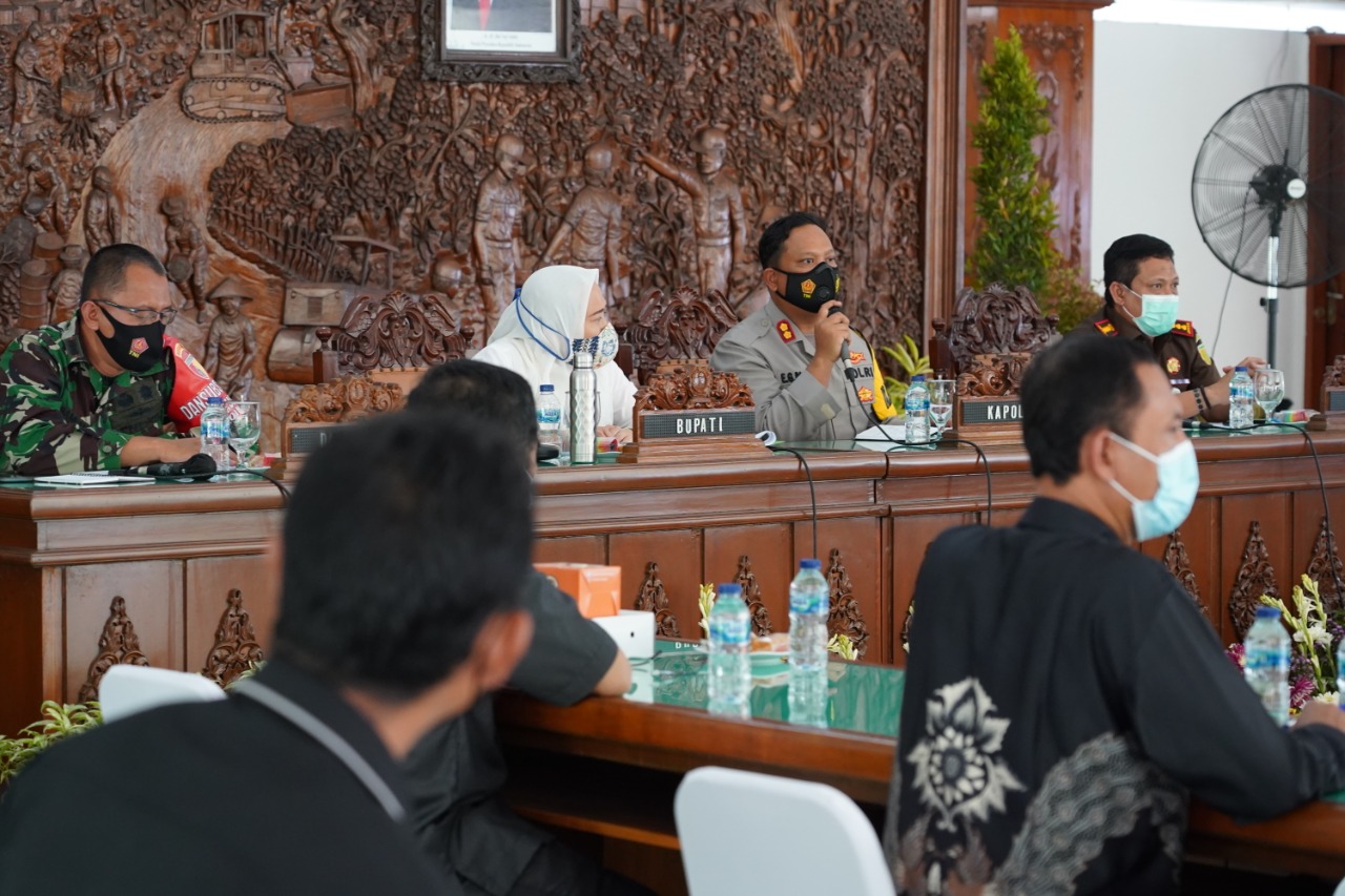 Hadir dalam rapat tersebut Dandim 0813, Kapolres Bojonegoro, Kepala Kejaksaan Negeri Bojonegoro,Sekretaris Daerah dan OPD terkait serta peserta lain secara virtual Jajaran Forkpimca se Kab. Bojonegoro dan Pengurus Pasar.