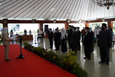 Bupati Bojonegoro Anna Muawanah mengukuhkan 16 pengurus Dewan Pendidikan Bojonegoro periode 2021-2025 di pendopo Malowopati pada Jumat 26-Februari-2021).