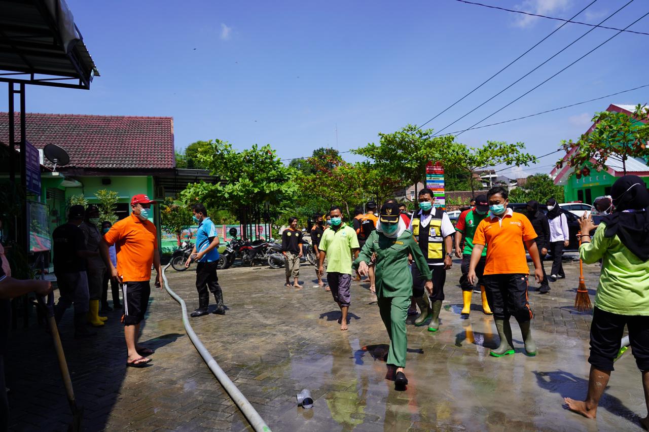 Bojonegoro-Bupati Bojonegoro Anna Muawanah meninjau lokasi banjir bandang yang terjadi di Kecamatan Gondang, Rabu 3-3-2021.