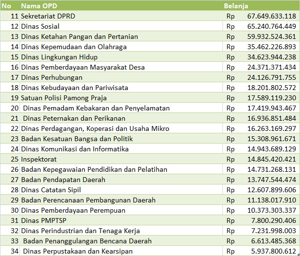 (Tabel Anggaran Belanja OPD Pemkab Bojonegoro tahun 2023. Data diolah dari data bpkad.id)