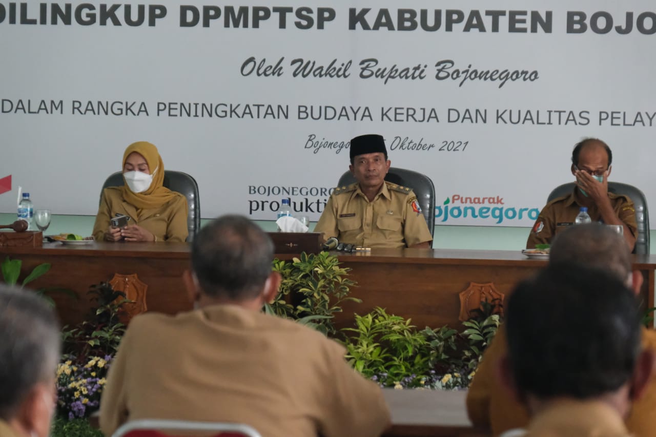 Bojonegoro,damarinfo.com – Wakil Bupati Bojonegoro Haji Budi Irawanto, memberikan apresiasi dan semangat kepada pegawai Dinas Penanaman Modal dan Pelayanan Terpadu Satu Pintu (DPMPTSP). Yaitu terkait peningkatan budaya kerja dan kualitas pelayanan publik di Bojonegoro.