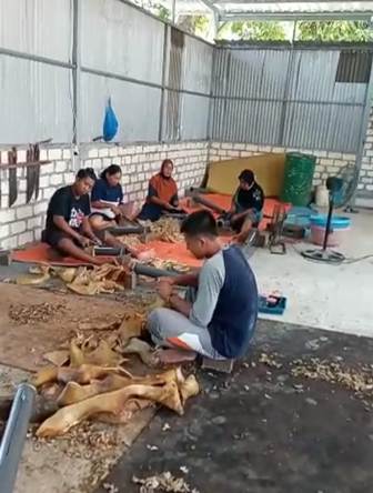 Selain itu, lanjutnya, pihanya masih bisa menerima kulit kulit sapi tersebut dari manapun. Termasuk dengan harga pasaran yang berlaku. “Ya..lumayanlah teman teman di lingkungan sini masih bisa bekerja, ” lanjut Bray88 panggilan akrab Aribowo sambil mengajak awak media melihat proses pemotongan dan pengeringan kulit sapi.