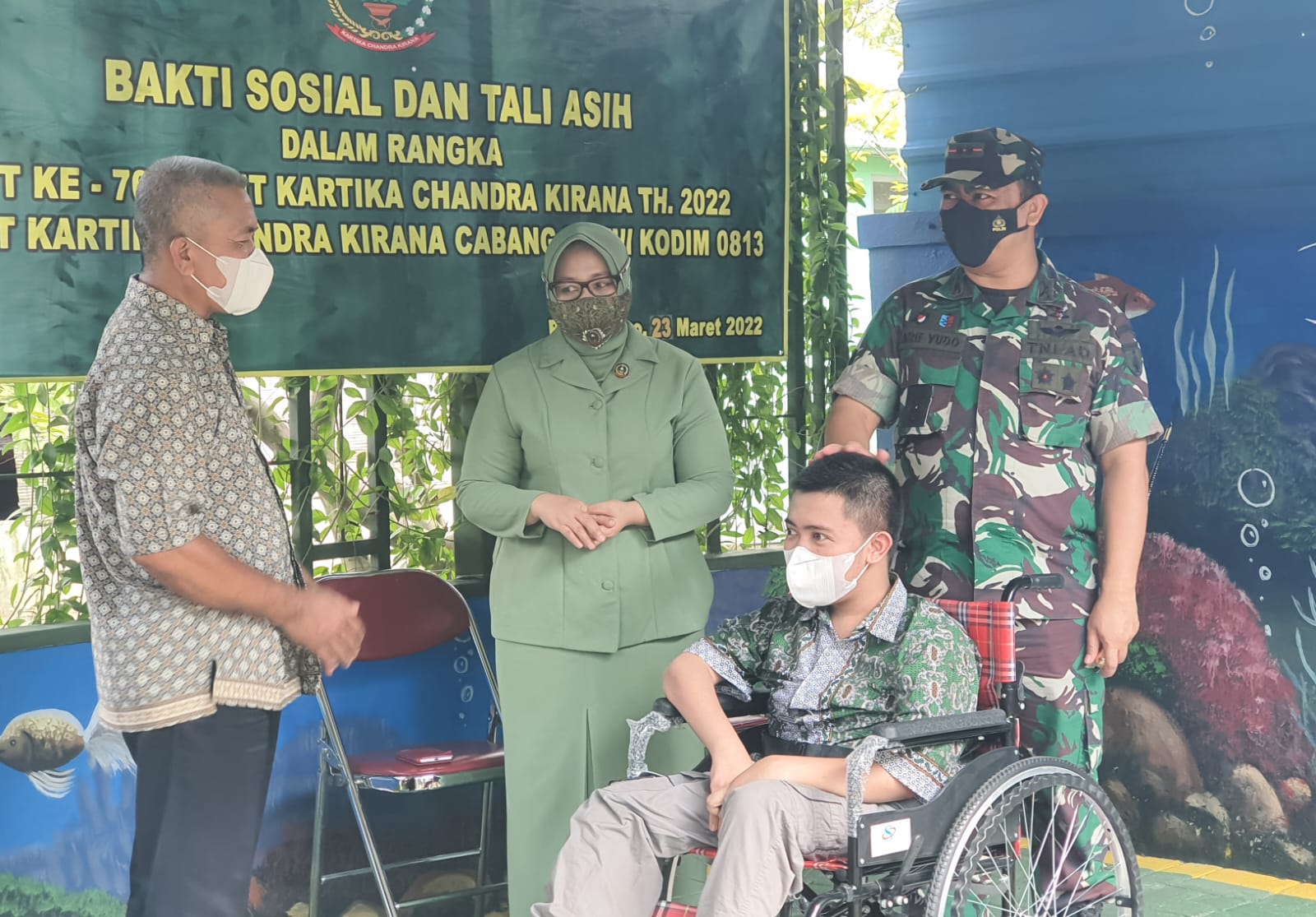 Bojonegoro, damarinfo.com – Dalam rangka menyambut Hari Ulang Tahun (HUT) Persit Kartika Chandra Kirana (KCK) ke- 76 yang jatuh pada 3 April tahun 2022 mendatang. Jajaran Persit KCK Cabang XXVIII Kodim 0813 Bojonegoro, melaksanakan kegiatan bakti sosial dengan memberikan bantuan sembako dan tali asih kepada Lembaga Kesejahteraan Sosial Anak (LKSA) AR Rohmah, Warakawuri, dan bantuan Kursi Roda terhadap warga masyarakat difabel diwilayah Kecamatan/Kabupaten Bojonegoro, Kamis 24 Maret 2022.