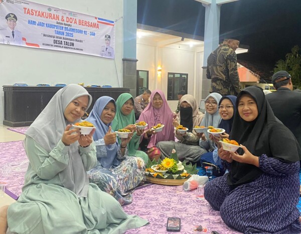 Bojonegoro – Peringatan Hari Jadi Kabupaten Bojonegoro (HJB) ke-348 tahun 2025 berlangsung dengan cara yang sedikit berbeda. Tahun ini, tidak ada acara Grebeg Berkah di Alun-alun Bojonegoro seperti tahun sebelumnya. Sebagai gantinya, tasyakuran dan doa bersama digelar serentak di seluruh desa dan kelurahan pada Minggu (19/10/2025). Salah satunya berlangsung di Desa Talun, Kecamatan Sumberrejo.