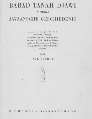 Sebuah buku berbahasa Belanda terbit di Den Haag tahun 1941 berjudul Babad Tanah Djawi, in Proza, Javaansche geschiedenis loopende tot het jaar 1647 der Javaansche jaartelling. Buku ini berisi terjemahan akademis naskah Jawa kuno oleh W.L. Olthof atas nama KITLV, lembaga riset terkemuka di bidang sejarah Hindia Belanda.