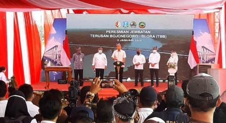 Peresmian jembatan dengan panjang 220 meter yang membentang di atas Sungai Bengawan Solo ini dihadiri oleh tiga menteri. Yaitu Menteri Perhubungan Budi Karya Sumadi, Menteri Sekretaris Negara Pratikno dan Menteri PUPR Basuki Hadimulyono, serta Gubernur Jawa Tengah Ganjar Pranowo. Sedangkan Gubernur Jawa Timur Khofifah Indar Parawansa tidak bisa hadir karena sedang isolasi mandiri soal Covid-19. Jembatan diresmikan oleh Bupati Blora Djoko Nugroho dan didampingi Bupati Bojonegoro, Anna Muawanah.