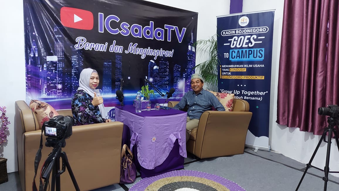 Di hari pertama pelaksanaan KADIN Goes to Campus, Rabu (13/10/2021) berlangsung mulai pukul 10.00 hingga 11.30 WIB, dengan konsep Podcast antara Ketua STIKes ICSada Bojonegoro Nurul Jatiyatin bersama narasumber Ketua KADIN Bojonegoro Gatot Rianto Eko Prabowo.