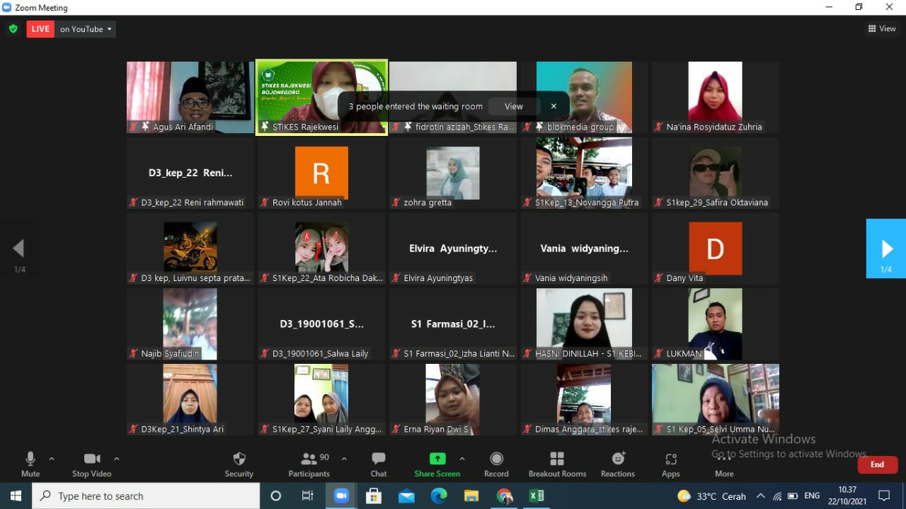 Bojonegoro,damarinfo.com- Kadin Goes to Kampus berlanjut, kali ini mengunjungi Kampus di Sekolah Tinggi Kesehatan (Stikes) Rajekwesi dan Stikes Muhammadiyah Bojonegoro. Di dua Kampus Kesehatan Kadin Goes To Campus digelar secara dalam jaringan (daring), Jum’at 22-10-2021. Antuasias mahasiswa dan civitas academika dari Kampus Stikes Rajekwesi cukup tinggi, tercatat ada lebih 100 peserta dalam webinar yang digelar sejak pukul 09.30 WIB itu.