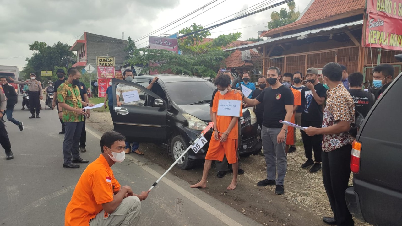Pelaku turun dari mobil sambil membawa senjata tajam dan dengan alat masin- masing langsung menghampiri korban bersama rombongan. Para tersangka mengancam korban dengan senjata tajam berupa celurit dan pedang. Bahkan, dalam upaya paksa tersangka juga menyetrum korban dengan alat strum yang sudah disiapkan.