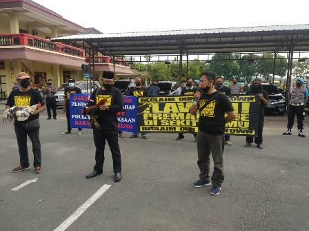 Damarinfo-Blora-Elemen masyarakat yang menamakan diri Komunitas Aksi Cinta Damai Kabupaten Blora menggelar aksi di halaman belakang Markas Kepolisian Resor (Mapolres) Blora, Kamis 20-Mei-2021.