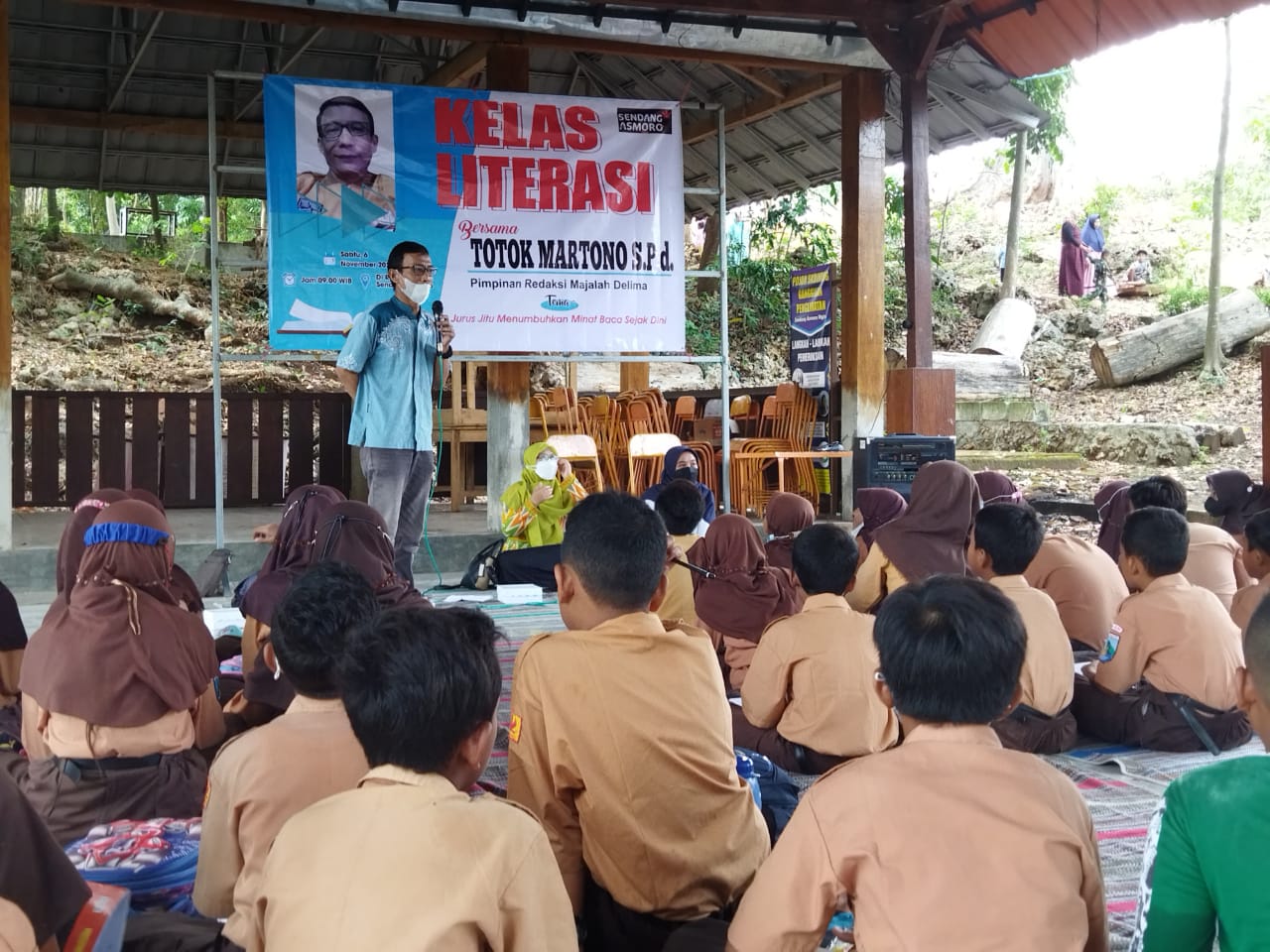 Dalam kegiatan yang diikuti oleh puluhan anak SD dengan didampingi para guru diundang Totok Martono, Wartawan, penulis dan juga kolektor ribuan buku.