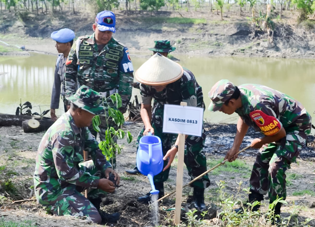 Sebanyak 2000 batang bibit pohon penghijauan yakni jenis trembesi 1000 batang, mahoni 500 batang dan johar 500 batang ditanam dalam kegiatan yang mengusung tema ‘Kebersamaan Dalam Menjaga Peningkatan Kualitas Lingkungan Hidup’. Kegiatan tersebut melibatkan jajaran TNI-Polri, kecamatan, pemerintah desa dan masyarakat setempat.