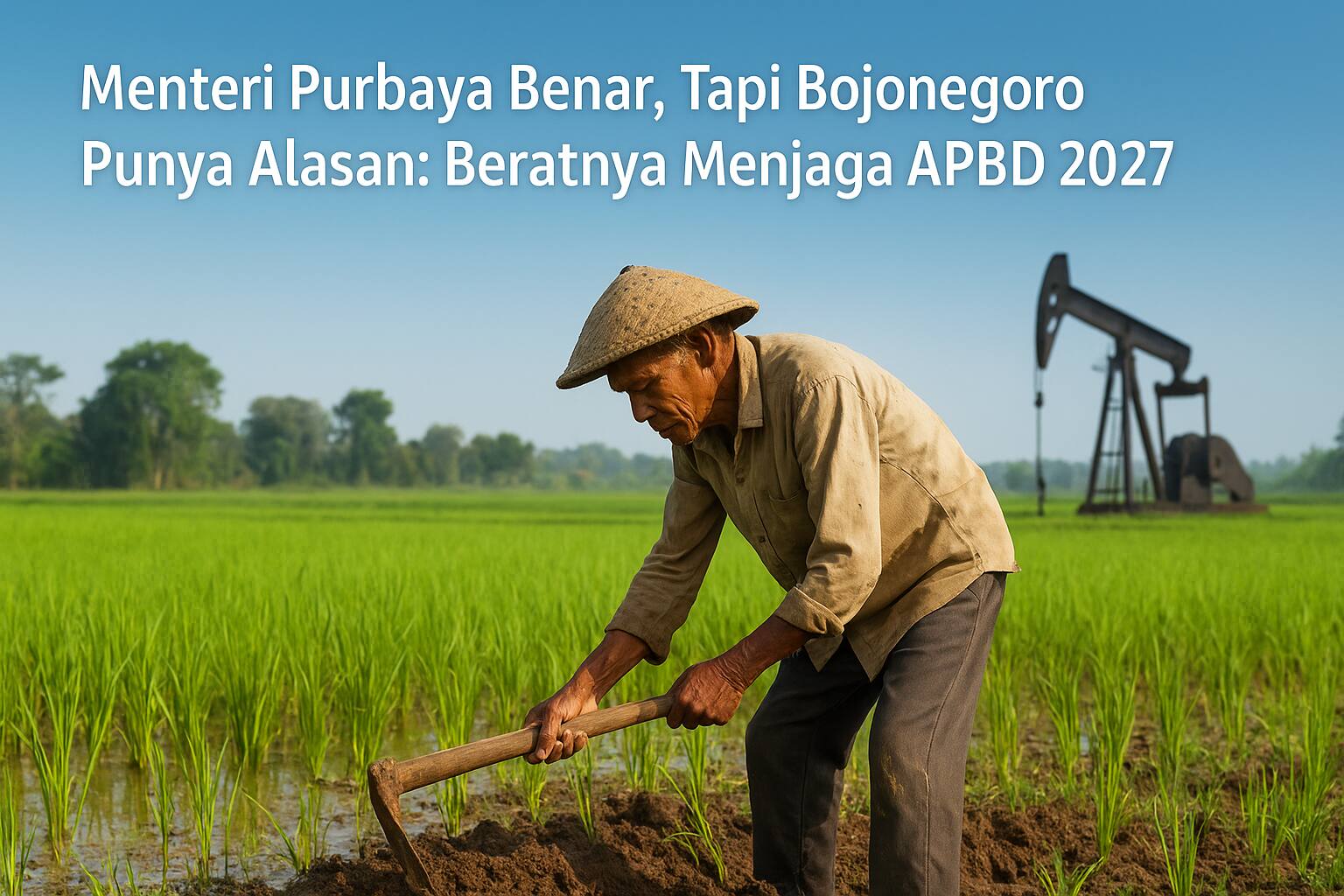 Mengelola fiskal Bojonegoro kini seperti meniti jembatan bambu di atas arus deras — salah langkah sedikit, keseimbangannya bisa runtuh.