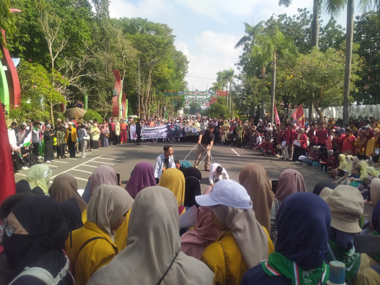 ”Kita berkumpul disini sebagai upaya empati atas perjuangan Palestina dalam memperjuangkan hidup di tanah kelahirannya. Hidup Palestina,” tegas seorang aktivis Aisyiyah.