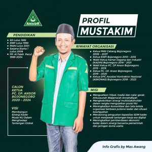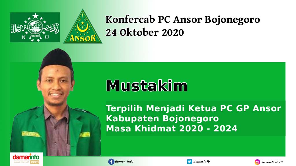 Bojonegoro – Mustakim kembali pimpin Ansor Bojonegoro setelah terpilih pada Konfrensi Cabang (Konfercab) XIX yang berlangsung di gedung Serba guna milik Pemerintah Kabupaten Bojonegoro Sabtu, 24-10-2020. Mustakim mendapat mandat untuk memimpin Pimpinan Cabang (PC) Gerakan Pemuda (GP) Ansor Bojonegoro periode 2020 – 2024