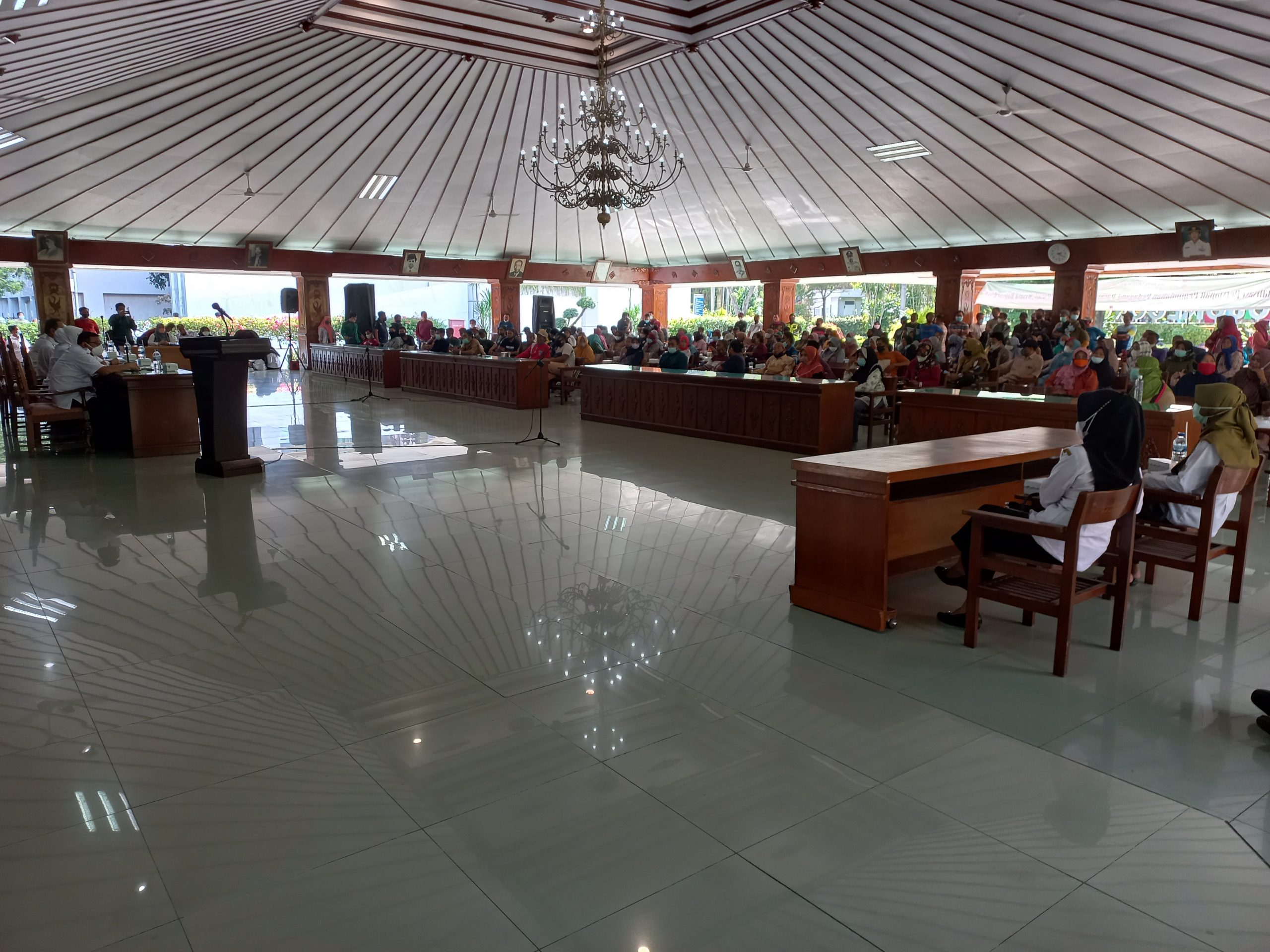 Soal tolak pindah disampaikan para pedagang saat sosialisasi yang digelar Pemkab di Pendopo Malowopati Bojonegoro, Jum’at 7-Januari-2022.