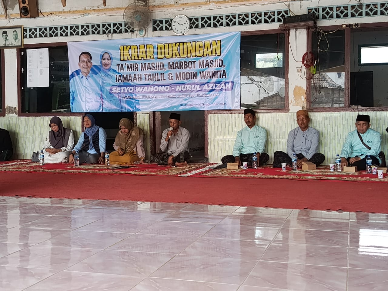 Ikrar dukungan kepada cabup dan cawabup, Setyo Wahono-Nurul Azizah dipusatkan di Pondok Pesantren Roudlotul Jannah, yang diasuh oleh KH. Sunaryo Hanas, Dusun Patoman, Desa Simorejo, Kecamatan Kanor, diikuti sekira 43 peserta. Pada Minggu 22-September-2024.