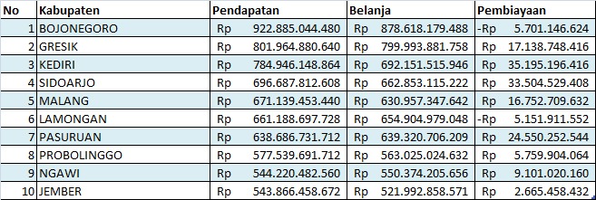 Berikut data Realisasi Pendapatan Desa di Jawa Timur tahun 2021