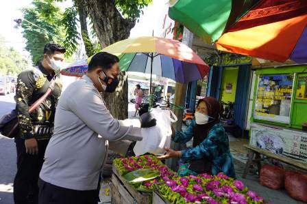 Bojonegoro,damarinfo – Kepolisian Resor (Polres) Bojonegoro menyalurkan bantuan sosial (bansos) kepada warga terdampak pandemi Covid-19 dan PPKM. Penyaluran bantuan sosial berupa paket beras dibagikan kepada para pedagang Usaha Kecil dan Menengah (UKM), pedagang kembang di Jalan Imam Bonjol dan pedagang di Pasar Banjarejo.