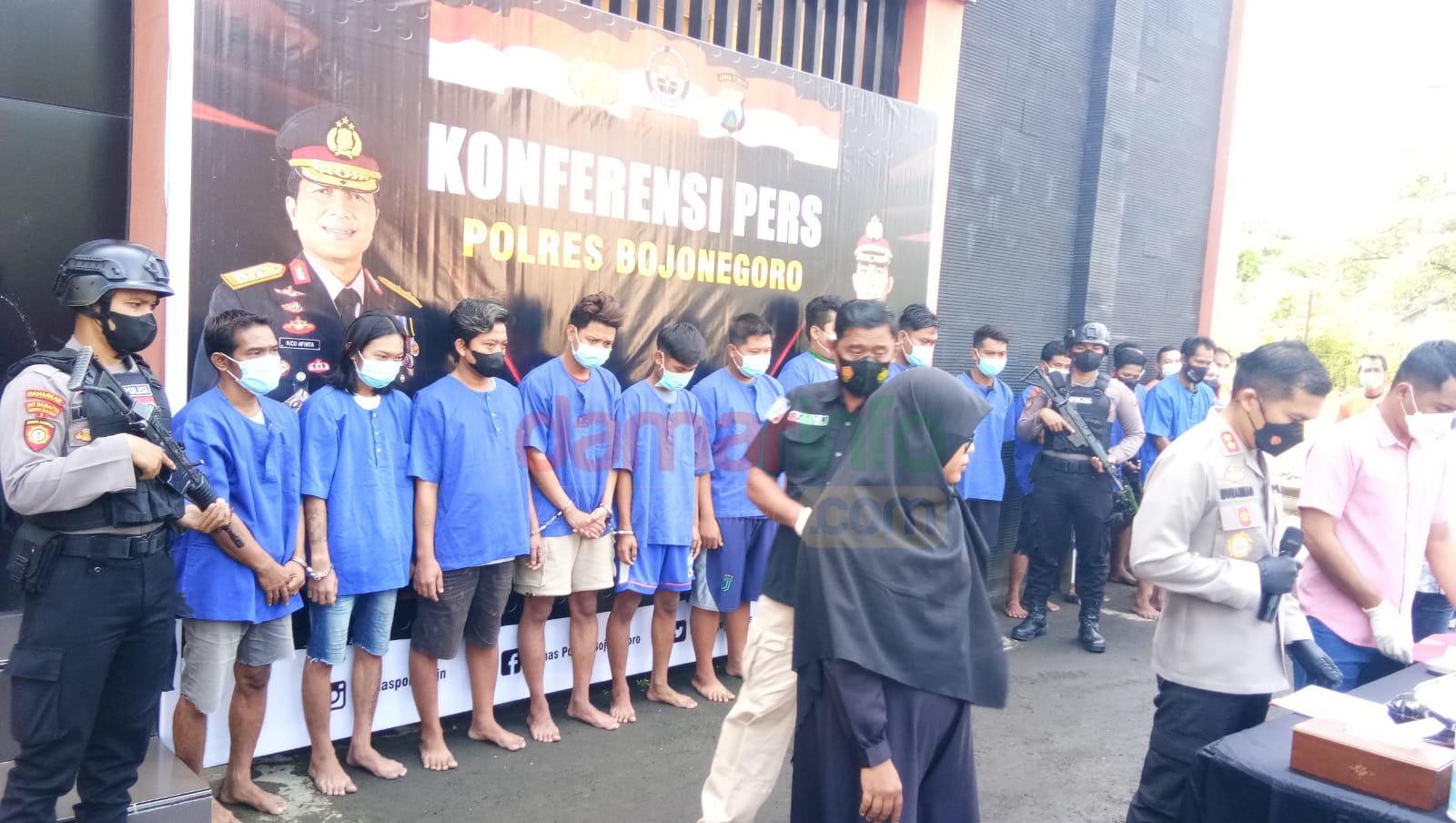 Bojonegoro, damarinfo.com – Kepolisian Resort (Polres) Bojonegoro mengamankan 9 tersangka kasus pengeroyokan dan 5 pelaku lainnya masuk Daftar Pencarian Orang (DPO), sementara dari 3 korban yang di larikan ke rumah sakit 1 mengalami luka bacok di bagian pinggang.