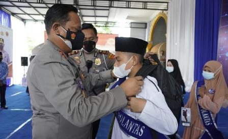 Kegiatan tersebut dilanjutkan penyematan slempang yang bertuliskan “Anak Asuh Polantas” kepada perwakilan anak asuh oleh Kapolres Bojonegoro. Sekaligus pemberian peralatan sekolah dan santunan.