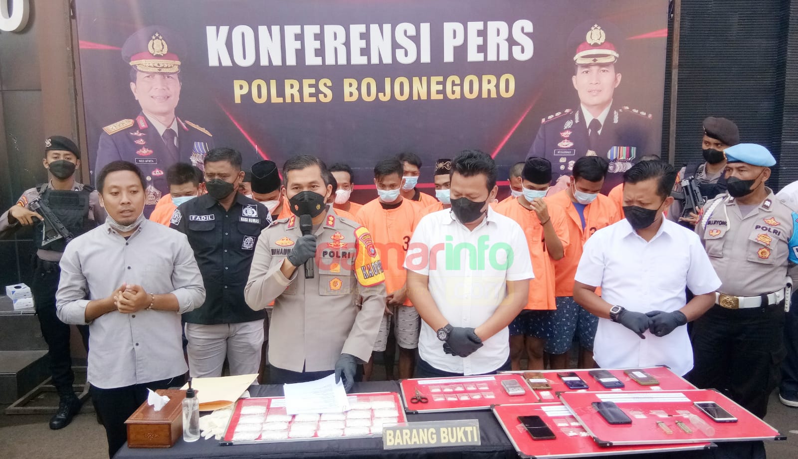 Bojonegoro, damarinfo.com – Kepolisian Resort (Polres) Bojonegoro mengamankan 15 orang dalam kasus narkotika, psikotropika, dan obat terlarang (Narkoba), di antaranya omset penjualan sabu mencapai delapan juta perminggunya.