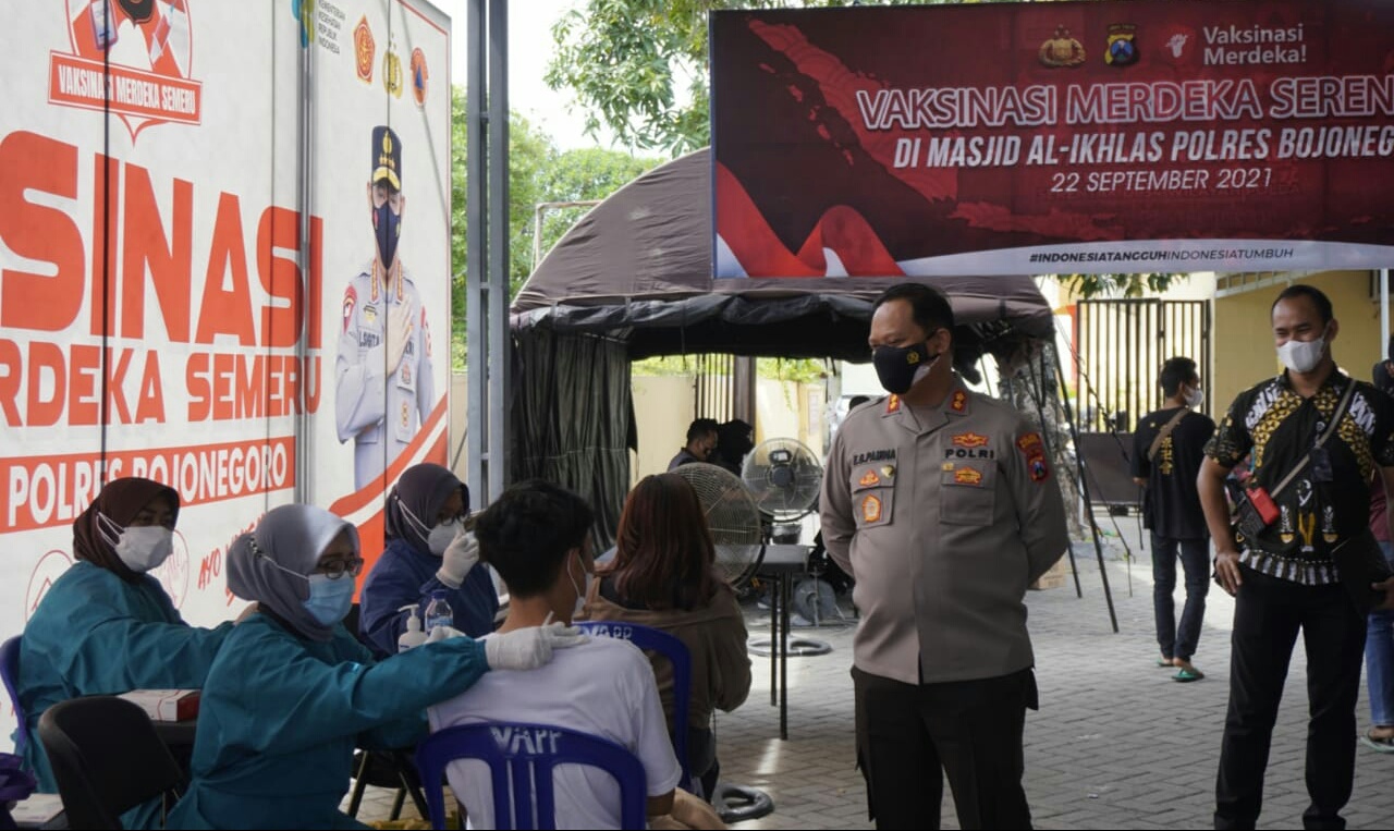 Menurut Kapolres Bojonegoro AKBP EG Pandia vaksinasi massal akan terus dilakukan. Setidaknya sebagai upaya mencegah penyebaran virus Covid-19.