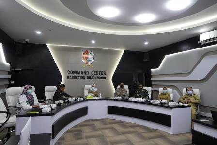 Damarinfo, Bojonegoro – Tim Forum Koordinasi Pimpinan Daerah (Forkopimda) Bojonegoro menggelar rapat dengan sejumlah menteri soal pelaksanaan Pemberlakuan Pembatasan Kegiatan Masyarakat (PPKM), pada Senin sore, 14-Juni-2021. Rapat lewat Video Cnference ini digelar di ruang Command Center Gedung Pusat Informasi Publik (PIP) Kominfo Bojonegoro.