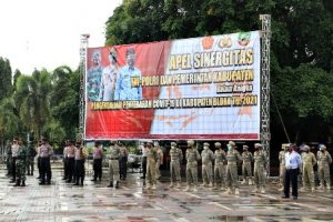 Blora-Aparat gabungan di Kabupaten Blora all out mencegah persebaran virus korona (Covid-19). Kesiapan itu ditunjukan dengan digelarnya apel sinergi TNI-Polri dan Pemerintah