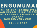 Bojonegoro – Panitia Seleksi Jabatan Pimpinan Tinggi Pratama Kabupaten Bojonegoro resmi mengumumkan hasil seleksi administrasi dan rekam jejak calon Sekretaris Daerah (Sekda)