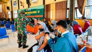 Bojonegoro, damarinfo.com – Jajaran TNI Kodim 0813 Bojonegoro, Jawa Timur, menggelar vaksinasi tahap pertama bagi para pelajar SMK Negeri 4 Bojonegoro, Kamis