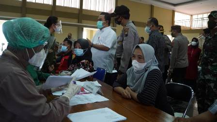 Damarinfo, Blora-Bupati Blora, H. Arief Rohman, bersama Wakil Bupati Tri Yuli Setyowati, dan jajaran Forkopimda, meninjau vaksinasi Covid-19 Sabtu pagi 26-Juni-2021. Ini adalah pelaksanaan vaksinasi yang dilaksanakan secara massal serentak se Kabupaten Blora.