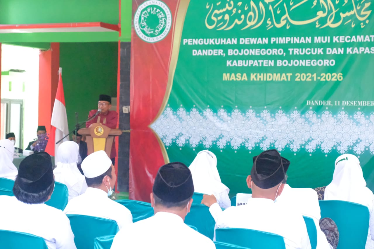 Bojonegoro, damarinfo.com – Majelis Ulama Indonesia (MUI) Kabupaten Bojonegoro terus melakukan konsolidasi dengan melantik pengurus tingkat Kecamatan. Salah satunya adalah Pelantikan Pengurus MUI tiga kecamatan yakni Kecamatan Dander, Trucuk dan Kapas, Sabtu 11-12-2021 di Pendopo Kecamatan Dander.