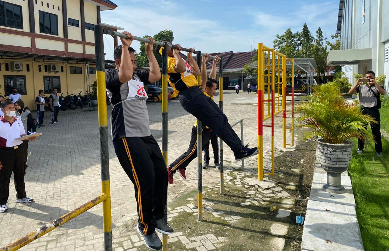 Bojonegoro,damarinfo.com-Kepolisian Resor (Polres) Bojonegoro menggelar Tes Kesamaptaan Jasmani (TKJ) semester I T.A. 2022 untuk seluruh personel Polres Bojonegoro. Kegiatan dalam rangka menjaga kebugaran fisik dan kesamaptaan dilaksanakan di halaman Gelanggang Olah Raga (GOR) Sanika Satyawada Polres Bojonegoro, Kamis 3-Kamis-2022.